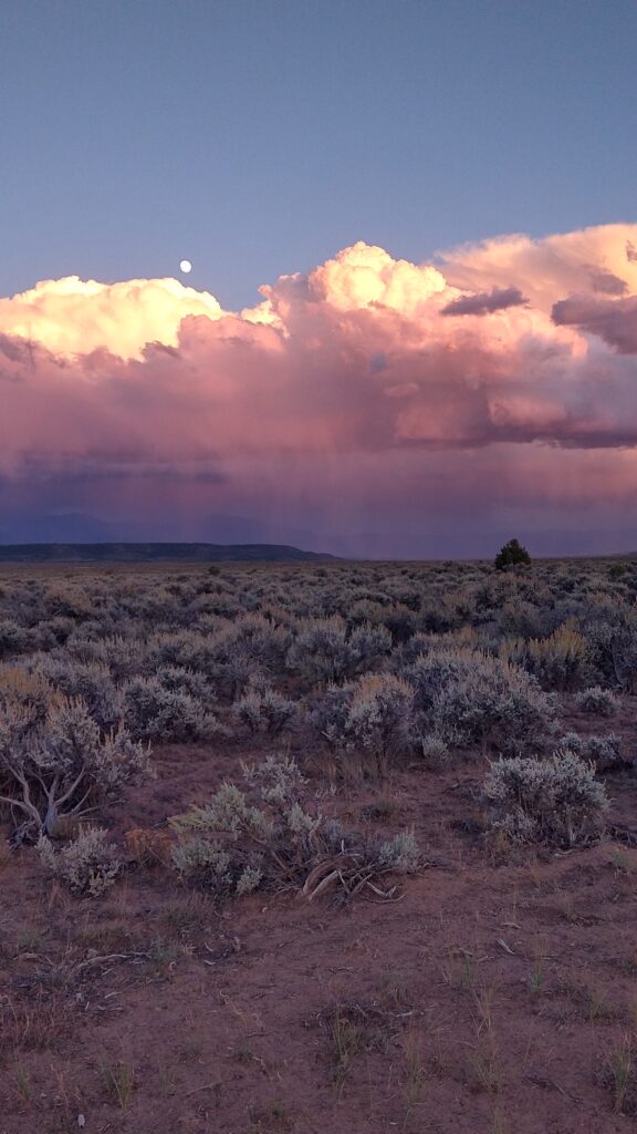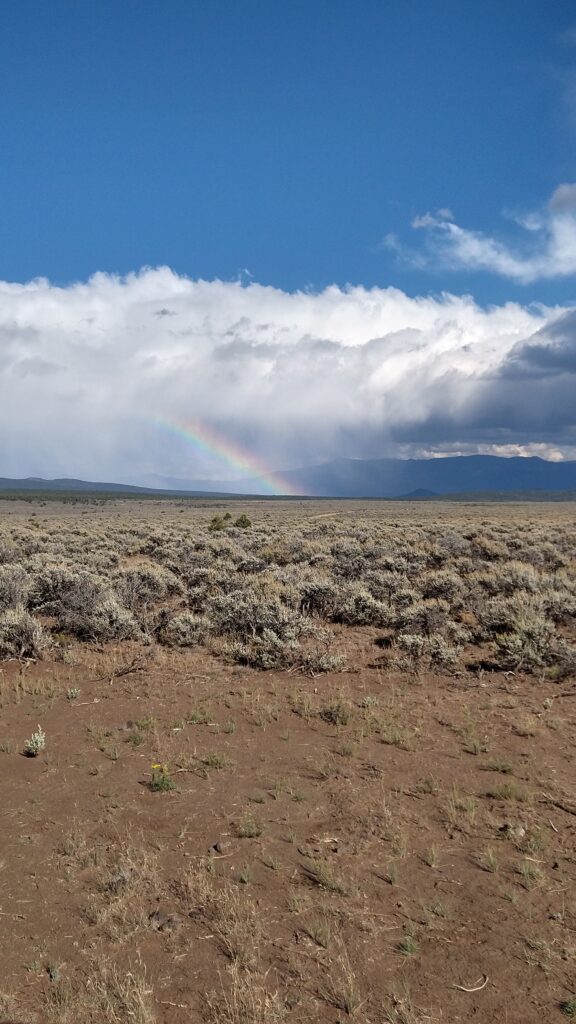 In late April, instead of going back to my cabin in the woods of New York, I headed south and purchased land in Tres Piedras, New Mexico, a small unincorporated town about thirty miles northeast of Taos. Not so many years ago(okay, more like one hundred years ago), Tres Piedras was an important stop on the Chili Line Railroad, but now about all that’s left is the water tank and a few old timers that still remember when the town back in the day, or had ancestors that told them how it was. For my purposes, there is a decent internet signal and a post office, so that’s okay by me. I head into Taos once or twice a week for supplies and “peopling.”